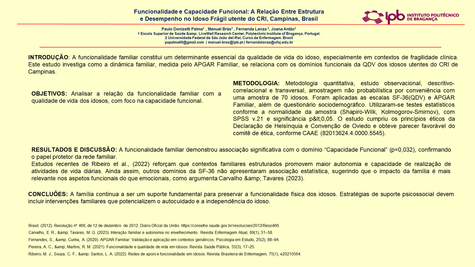 Olivia Maria de Jesus Pacheco Lourenço; Cristina Madruga E Silva; Karina de Freitas Brás Calisto