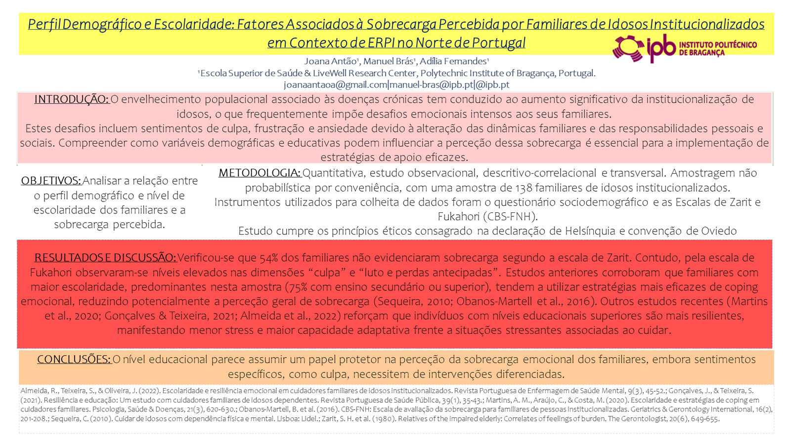 PO2Perfil Demográfico e Escolaridade: Fatores Associados à Sobrecarga Percebida por Familiares de Idosos Institucionalizados em Contexto de ERPI no Norte de Portugal
