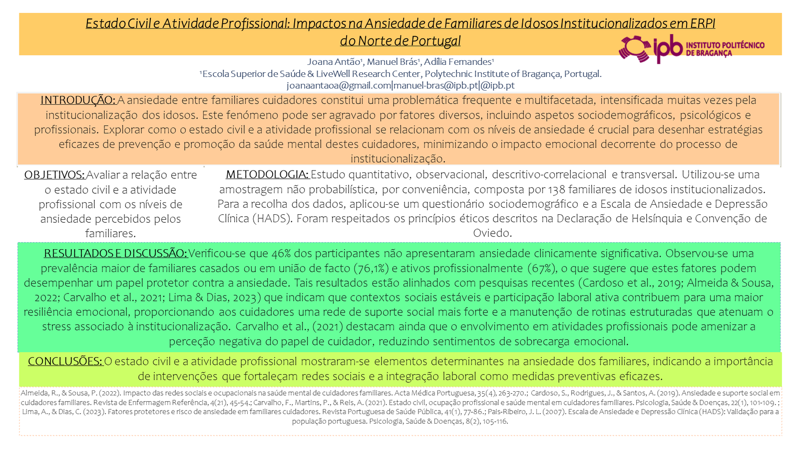 PO3Estado Civil e Atividade Profissional: Impactos na Ansiedade de Familiares de Idosos Institucionalizados em ERPI do Norte de Portugal
