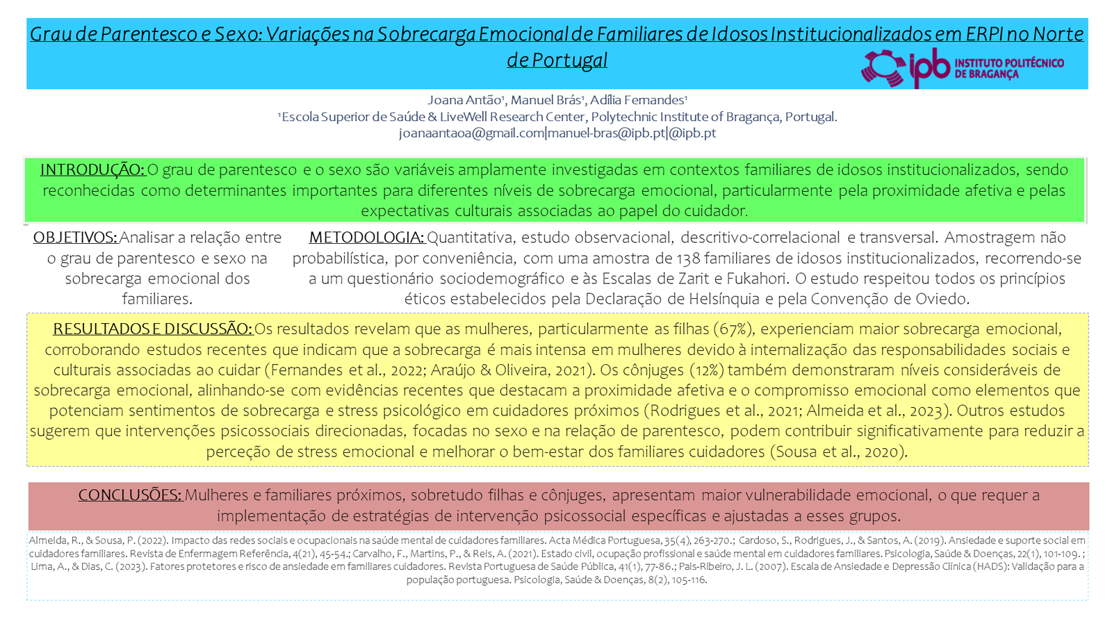 PO4Grau de Parentesco e Sexo: Variações na Sobrecarga Emocional de Familiares de Idosos Institucionalizados em ERPI no Norte de Portugal